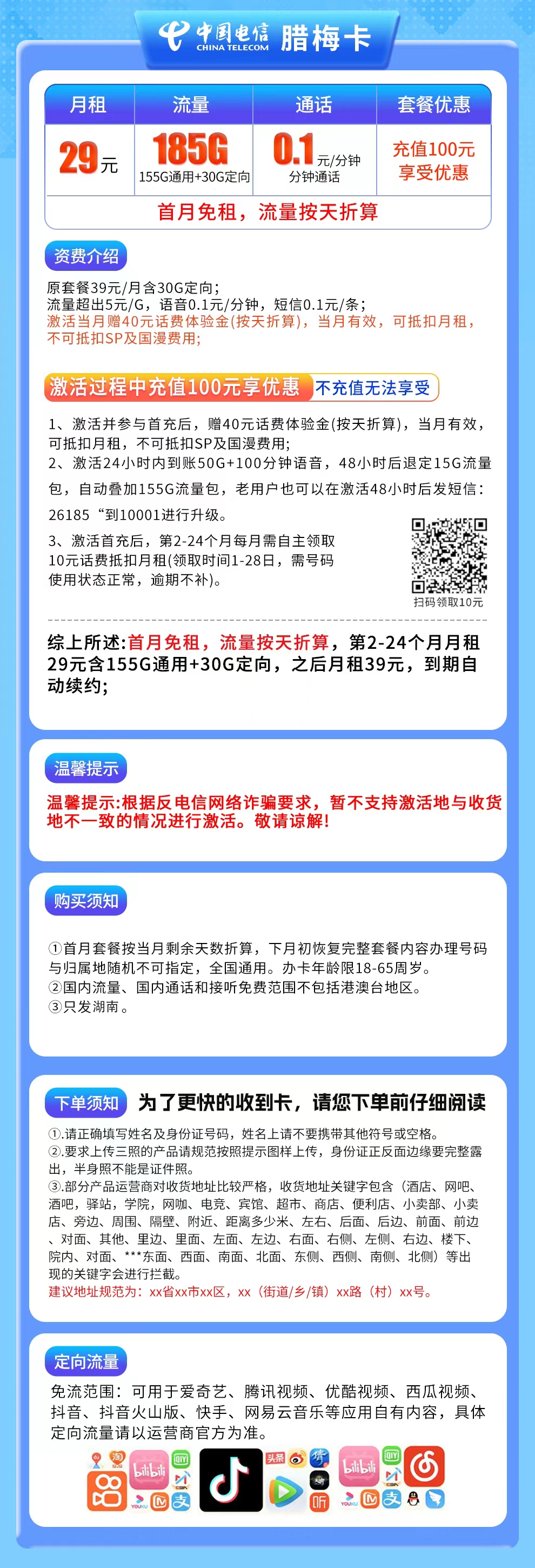 湖南电信腊梅卡